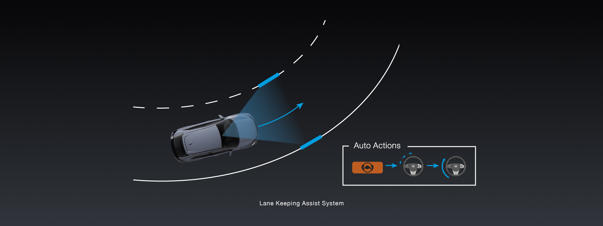 โดยกล้องด้านหน้าจะทำการตรวจจับเส้นแบ่งช่องทางเดินรถ ซึ่งระบบจะช่วยเพิ่มแรงหน่วงของพวงมาลัย เพื่อช่วยผู้ขับขี่ให้ควบคุมรถอยู่ภายในช่องทางปกติและลดอาการเหนื่อยล้าของผู้ขับขี่ ระบบนี้จะใช้งานได้ก็ต่อเมื่อเส้นถนนมีความชัดเจน ตัวกล้องด้านหน้าถึงจะทำงานได้ ประโยชน์ก็คือถ้าเราเกิดวิ่งออกนอกเส้นทาง ซึ่งจะทำให้เกิดอันตรายต่อรถคันอื่นได้ ระบบจะช่วยเตือนให้ผู้ขับขี่ต้องระมัดระวัง