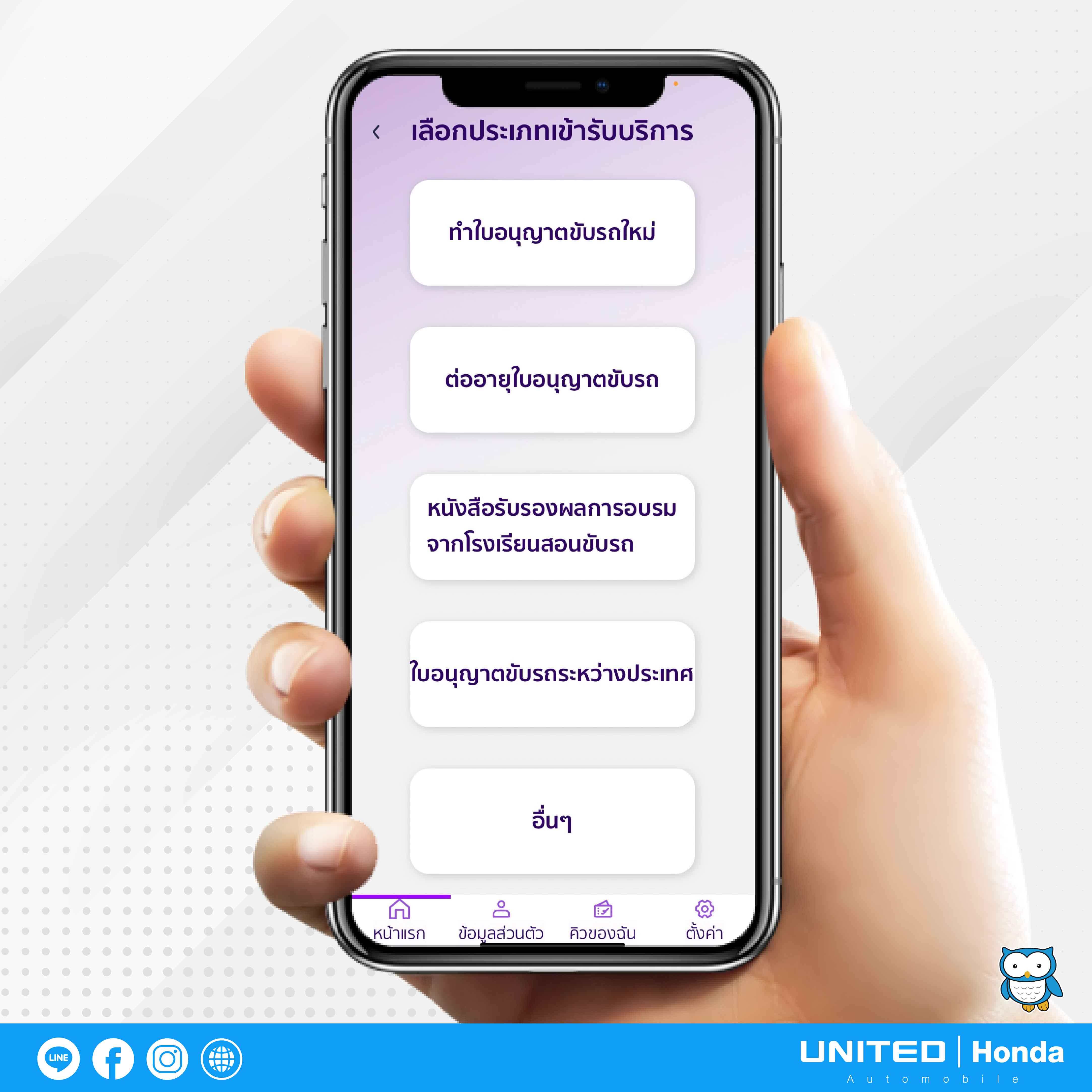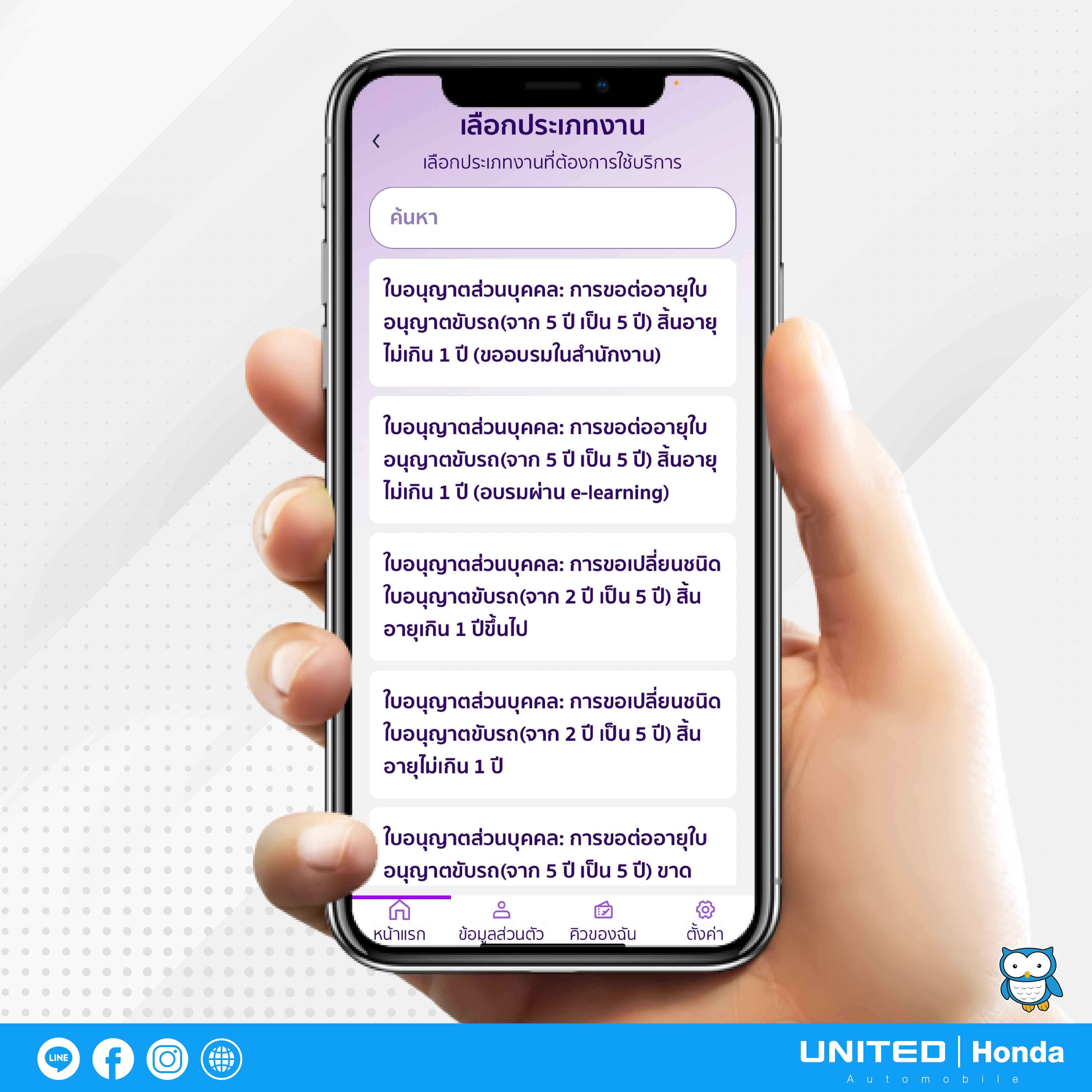 สำหรับในขั้นตอนนี้จะเป็นการเลือกประเภทงานรับบริการครับ โดยให้เลือกเมนูงานบริการเป็น “งานใบอนุญาต” เพื่อทำการจองคิวต่ออายุใบขับขี่นั่นเองครับ