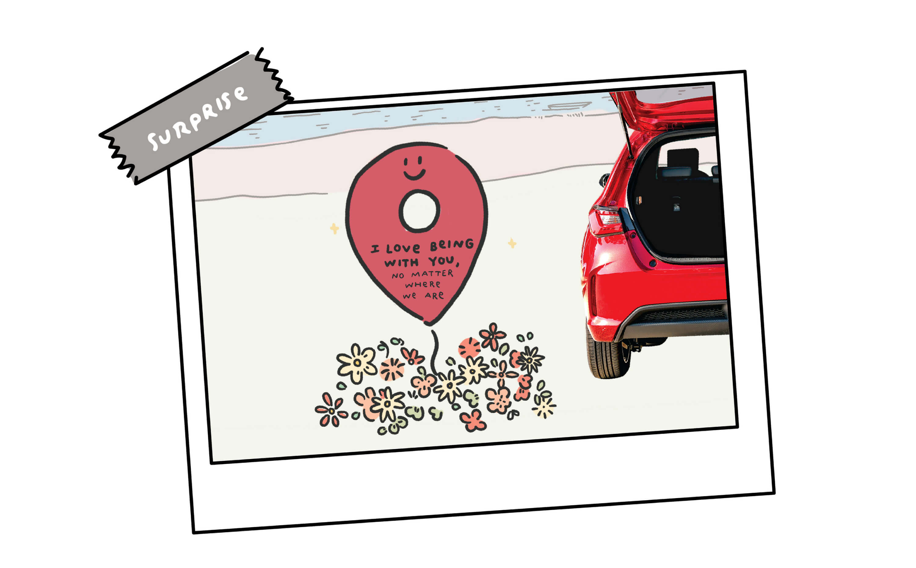 และไม่ว่าคอนเทนต์ไหนๆ ก็ไม่พลาด หรือถ้ามีหวานใจไปด้วยแล้วจะจัดเซอร์ไพรส์เล็กๆ ให้้หวานใจก็ได้นะครับ อย่างเช่นการแอบซ่อนลูกโป่งไว้ที่ท้ายรถแล้วยิ่งมีโน้ตข้อความซึ้งๆ คลาสสิกแต่รับรองว่าฟินน ถูกใจแน่นอน เซอร์ไพรส์เล็กหรือใหญ่ก็จัดได้หมด เรียกได้ว่ามาทริปทั้งทีมาเติมความหวานกันด้วยเลย โรแมนติกมากก และสิ่งที่ขาดไม่ได้เลยในการออกทริปก็คือ อุปกรณ์ที่จำเป็นในการออกทริปหรือพร็อพถ่ายรูปที่ต้องเตรียมให้พร้อมนั่นเอง ไม่ว่าของจะเยอะขนาดไหนรถยนต์ ฮอนด้า แฮทช์แบ็ก คันนี้ก็ไหว! เพราะนอกจากห้องโดยสารที่กว้างขวางนั่งสบายแล้ว ยังโดดเด่นด้วยเบาะนั่งอัลตราซีทที่สามารถปรับพับเพื่อเพิ่มพื้นที่ใช้สอยอเนกประสงค์ได้ถึง 4 โหมด พร้อมกับห้องสัมภาระท้ายขนาดใหญ่ที่เป็นเอกลักษณ์ที่โดดเด่นของฮอนด้าอีกด้วยครับ ด้วยสเปซที่กว้าง รองรับทุกไลฟ์สไตล์การใช้งาน