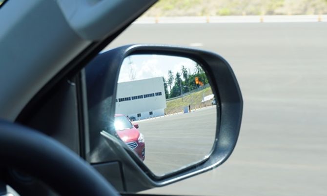 - กระจกมองหลัง : ปรับให้เห็นด้านหลังในมุมที่กว้างที่สุดเพื่อให้เห็นรถที่ขับตามหลังมา