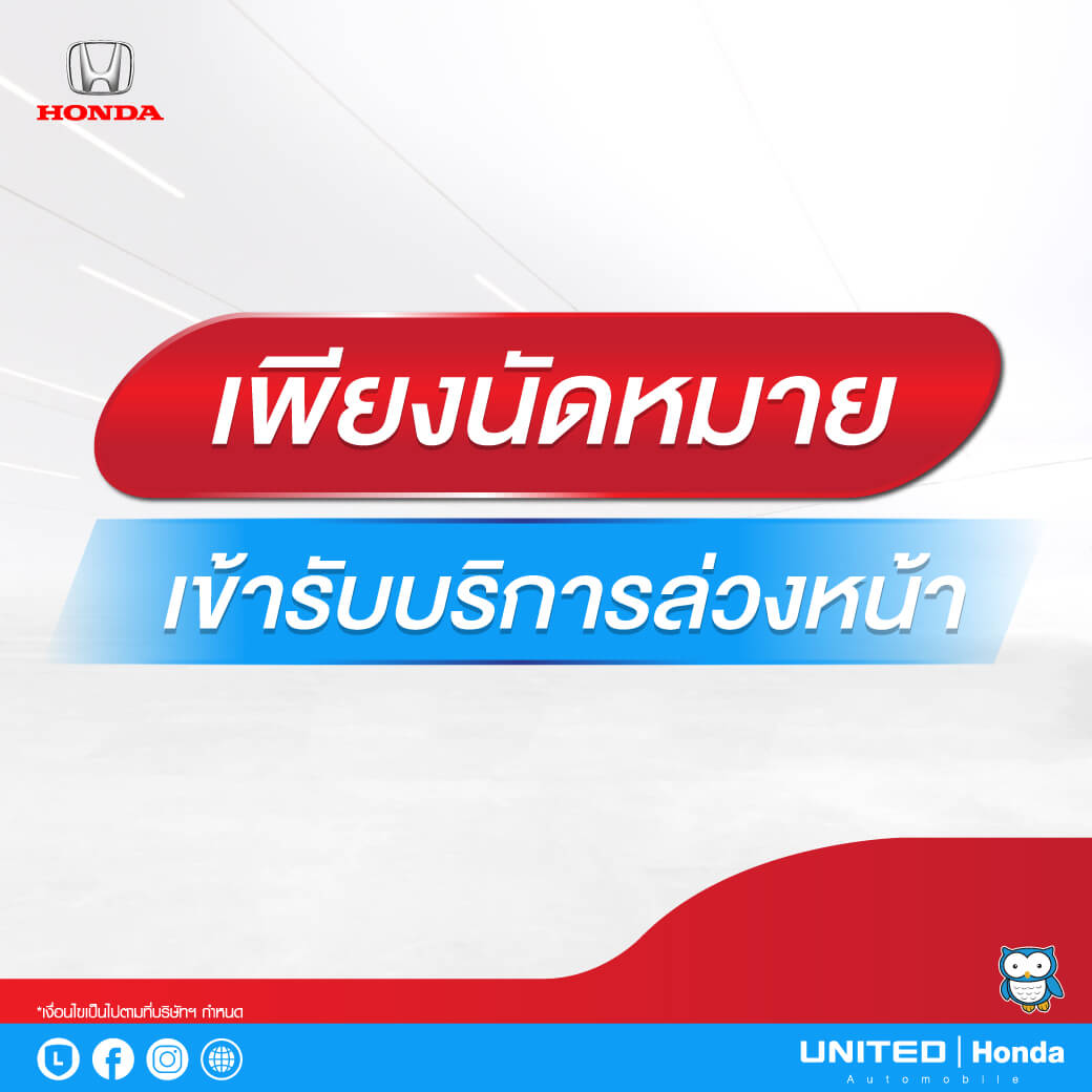 หากสนใจบริการนี้สามารถนัดหมายเพื่อเข้ารับบริการล่วงหน้าได้ทุกช่องทาง ไม่ว่าจะเป็นทาง Line : @unitedhonda Facebook : United Honda Automobile หรือโทร 02-432-2222 ได้เลยครับ