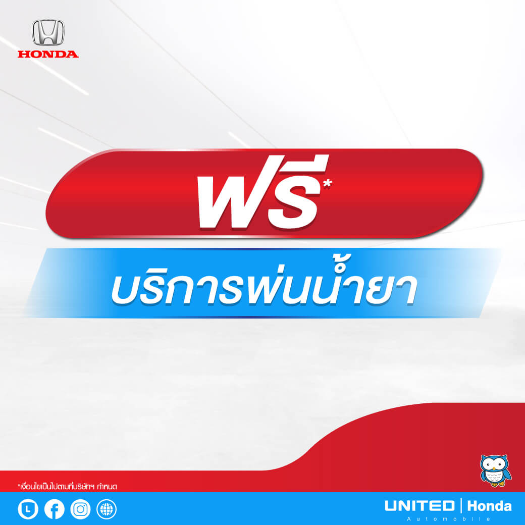สำหรับบริการพ่นน้ำยาฆ่าเชื้อเป็นบริการที่ ยูไนเต็ด ฮอนด้า มอบให้กับลูกค้าที่ต้องการใช้บริการ โดยไม่มีค่าใช้จ่ายใดๆ ทั้งสิ้น เพียงแจ้งกับเจ้าหน้าที่ได้เลยครับ