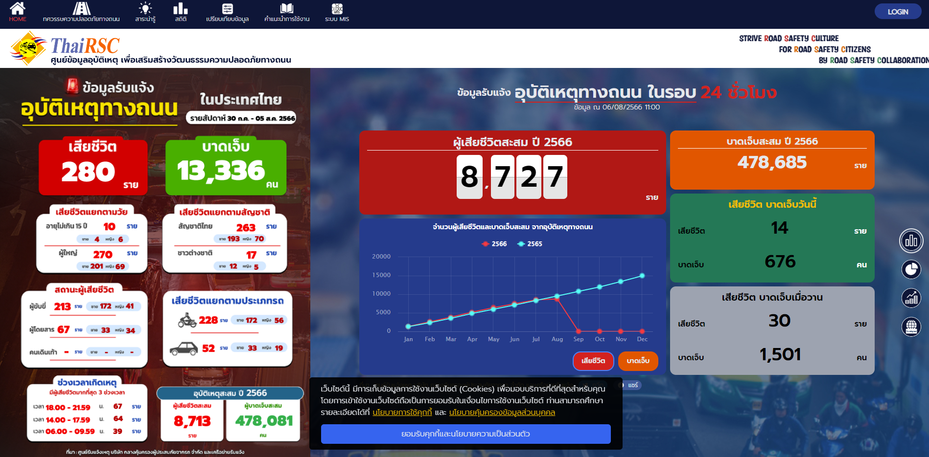จากศูนย์ข้อมูลอุบัติเหตุเพื่อเสริมสร้างวัฒนธรรมความปลอดภัยทางถนน (www.thairsc.com) จะเห็นได้ว่าในเว็บไซต์จะมีการระบุการเกิดอุบัติเหตุเอาไว้อย่างครบถ้วนอย่างเช่น ผู้เสียชีวติ การบาดเจ็บ การพิการมีจำนวนเท่าไหร่ต่อปี ช่วงอายุ เพศ รวมไปถึงรถที่มักเกดอุบัติเหตุมากที่สุดเป็นรถประเภทใด เป็นต้น