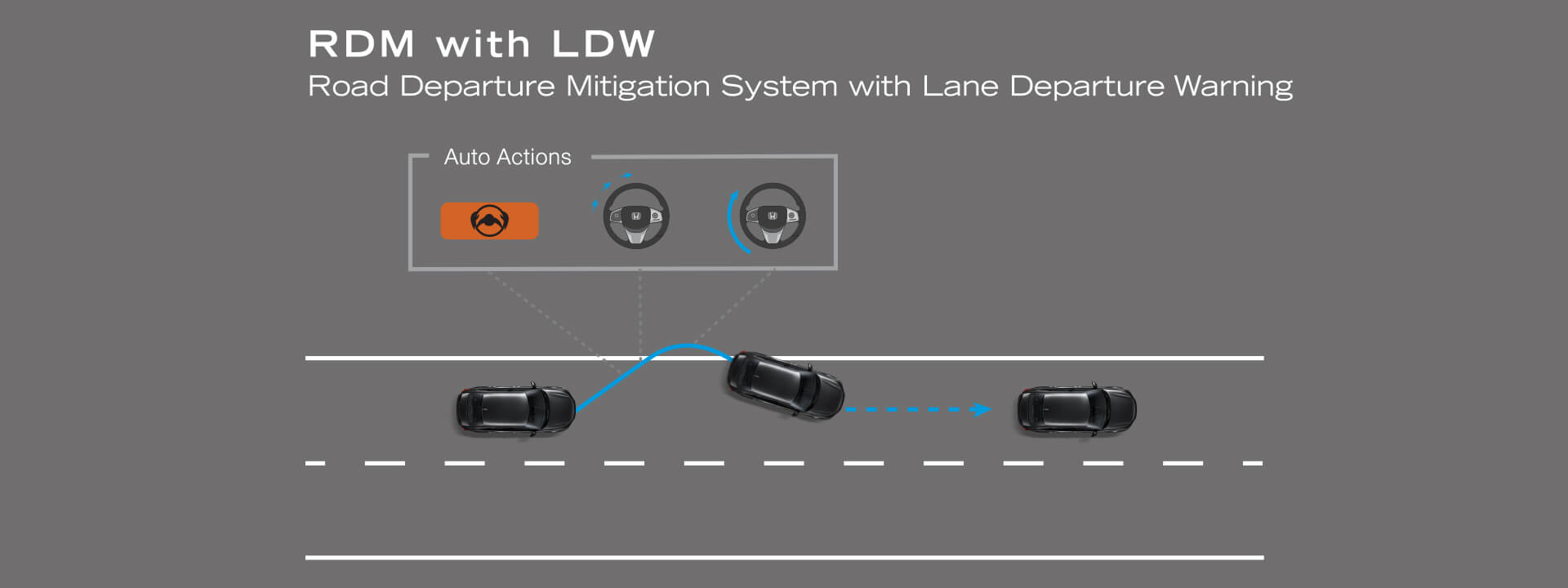 - ระบบเตือนและช่วยควบคุม เมื่อรถออกนอกช่องทางเดินรถ