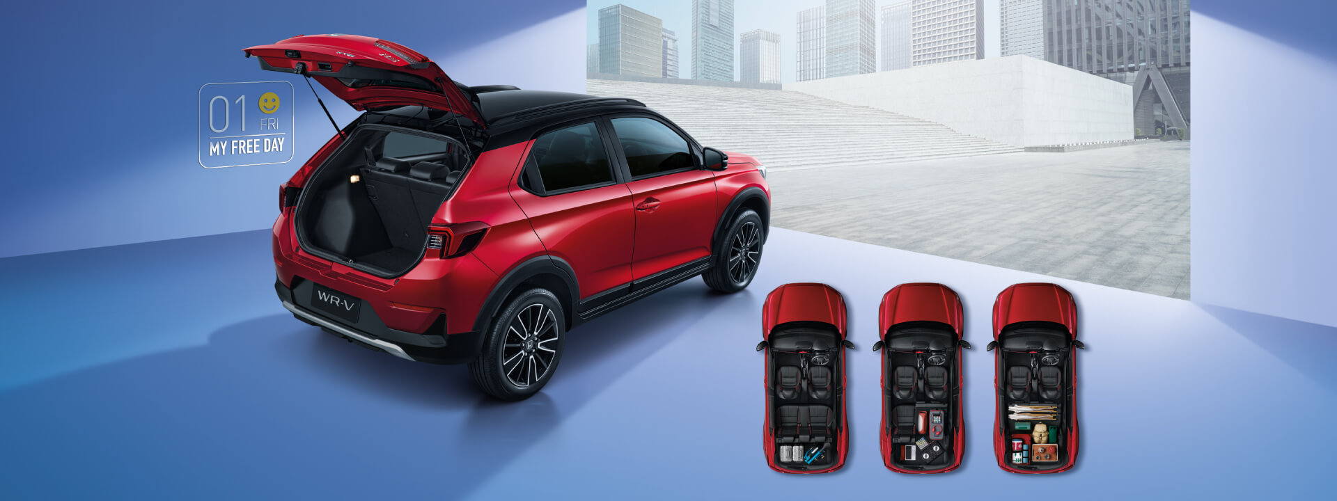 All-new Honda WR-V เป็น SUV ที่มีขนาดกะทัดรัดเหมาะกับวัยรุ่นหรือวัยทำงาน ที่ไม่ได้เน้นรถคันใหญ่แต่ยังคงความสปอร์ต และการอำนวยความสะดวก สบาย อย่างการพับเบาะแถวหลังที่สามารถพับได้ 60:40 ครับ