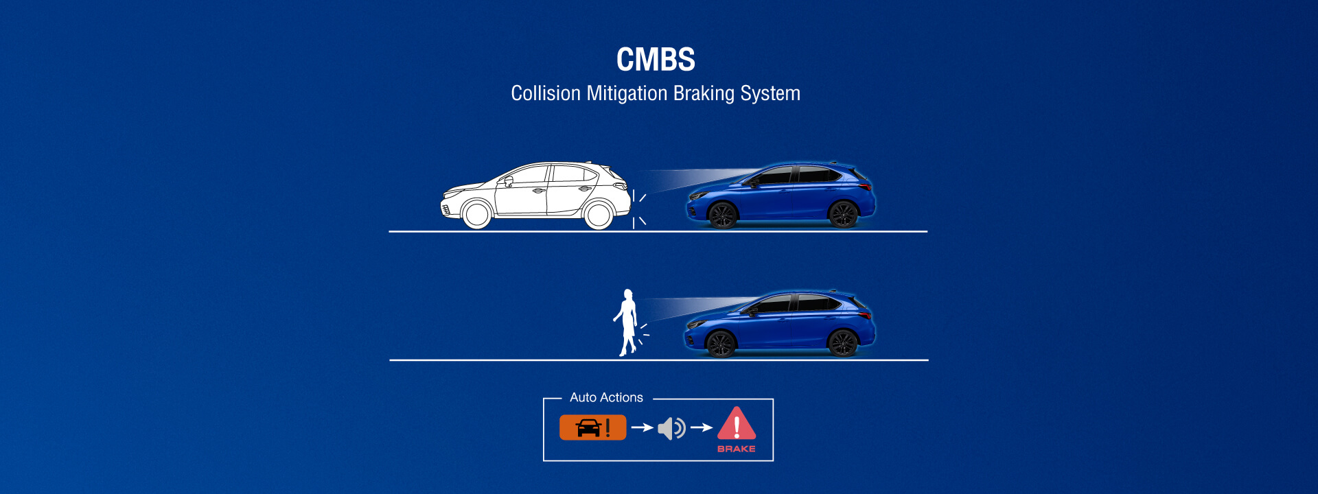 - ระบบเตือนการชนพร้อมระบบช่วยเบรก (Collision Mitigation Braking System : CMBS)
