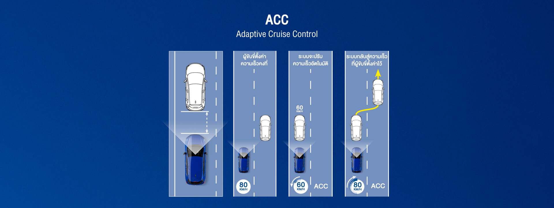 - ระบบควบคุมความเร็วอัตโนมัติแบบแปรผัน (Adaptive Cruise Control : ACC)