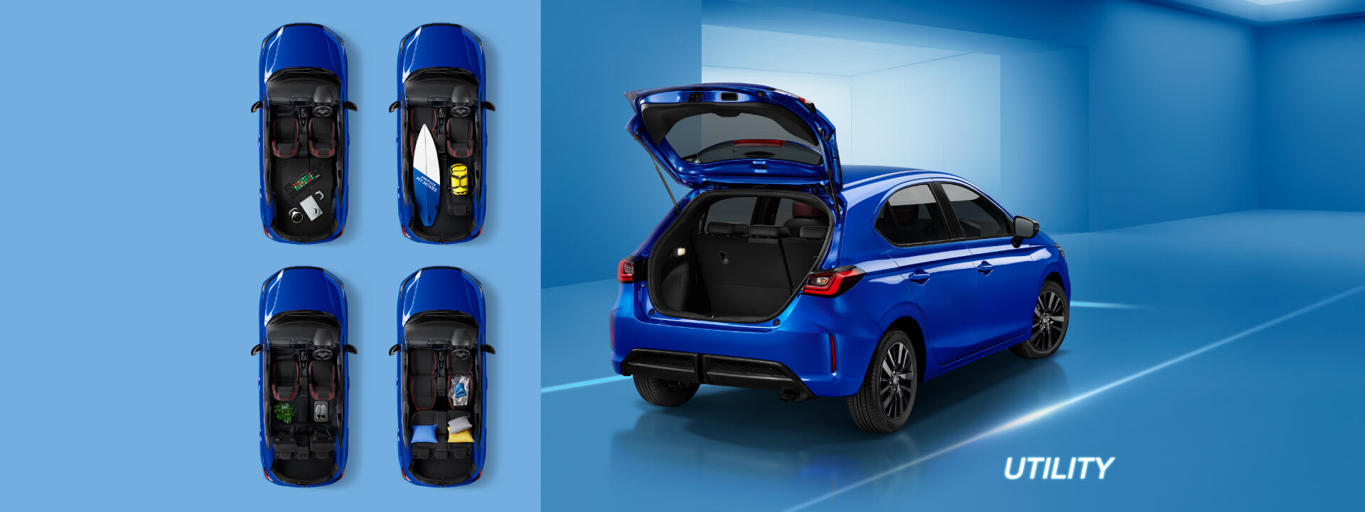 - Utility Mode เบาะด้านหลังทั้ง 2 ด้านปรับพับเรียบ เพิ่มพื้นที่เก็บของด้านหลัง