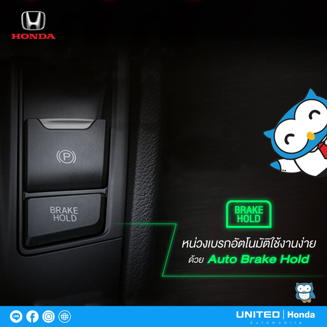 หากต้องการเปิดใช้งานระบบนี้ เพียงกดที่ปุ่ม Auto Brake Hold เพื่อเปิดใช้งานระบบ ซึ่งระบบนี้สามารถช่วยให้ผู้ขับขี่ไม่ต้องคอยสลับเกียร์ไปมา ระหว่างเกียร์ D และ N สะดวกมากๆ หากอยู่ในสถานการณ์ที่ต้องจอดติดไฟแดงเป็นเวลานานๆ นอกจากนี้ยังเหมาะกับการจอดและออกตัวบนทางลาดชันอีกด้วยนะครับ และถ้าต้องการยกเลิกการใช้งานก็เพียงแค่กดที่ปุ่ม Auto Brake Hold อีกครั้งเท่านั้นครับ ระบบจะตัดการทำงานเพื่อเข้าสู่การขับขี่แบบปกตินั่นเอง ***ระบบนี้จะทำงานก็ต่อเมื่อผู้ขับขี่คาดเข็มขัดนิรภัยเท่านั้นนะครับ***