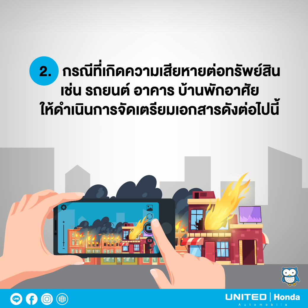 - หากมีการดำเนินการจ่ายเงินค่าซ่อมแซมหรือค่าใช้จ่ายที่เกี่ยวข้องกับความเสียหายให้เก็บใบเสร็จไว้ให้ครบถ้วน