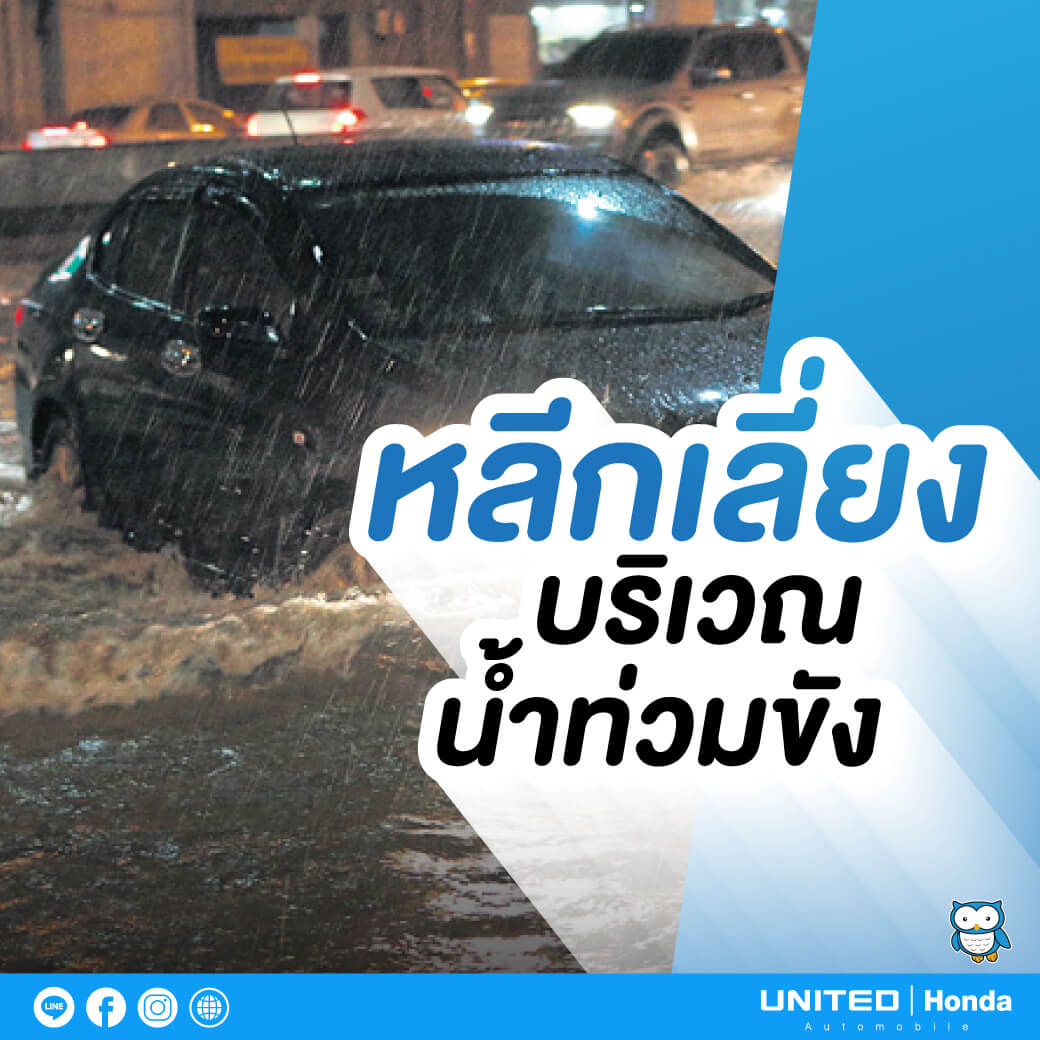 ในช่วงหน้าฝนหลายๆ พื้นที่อาจจะมีน้ำท่วมขังเกิดขึ้นได้ แนะนำให้ทุกท่านหลีกเลี่ยงหรือรถความเร็วลงในบริเวณดังกล่าว เพราะหากน้ำกระเด็นเข้าเครื่องยนต์อาจจะส่งผลให้เกิดความเสียหายกับรถยนต์ได้ครับ