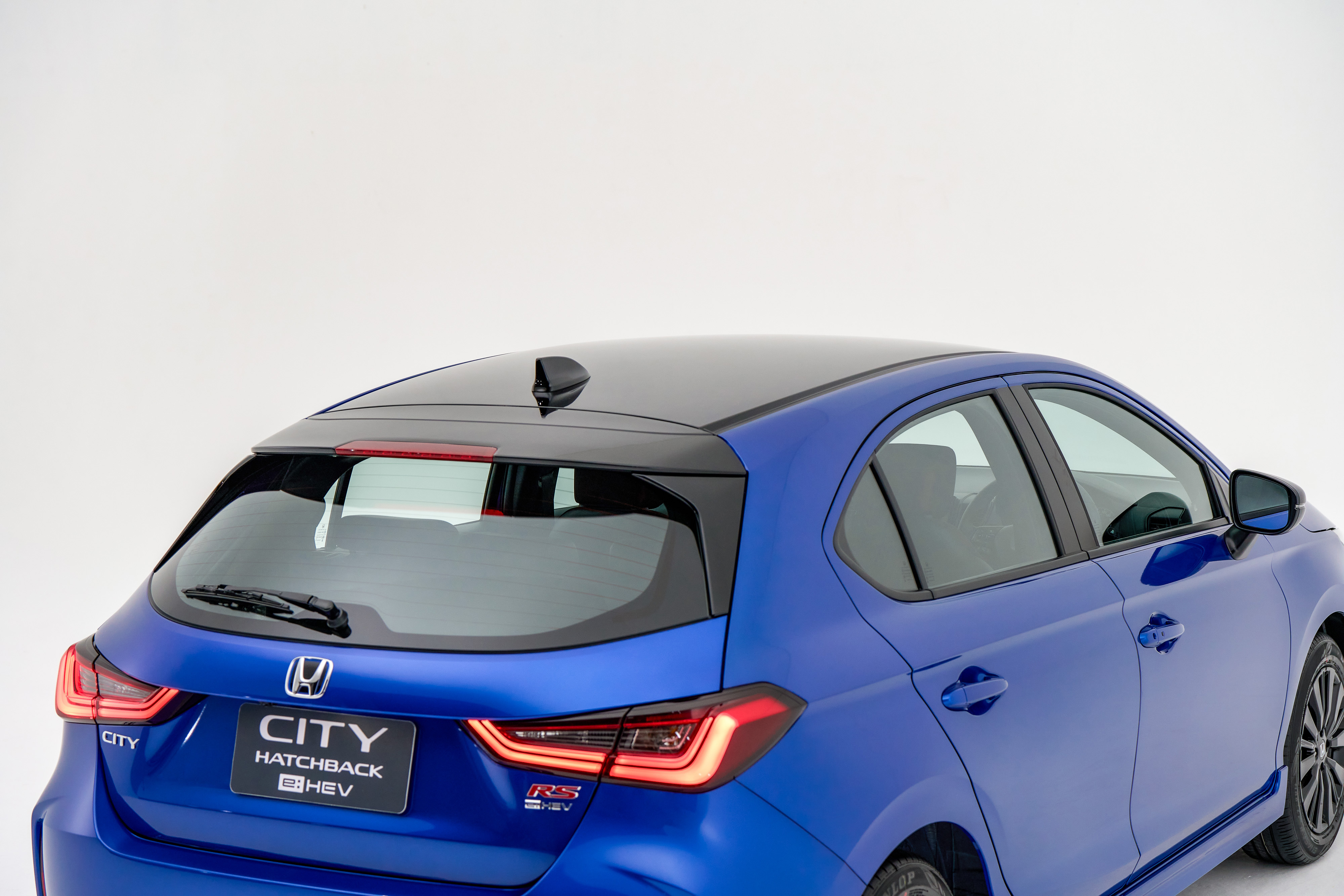 สำหรับ ฮอนด้า ซิตี้ แฮทช์แบ็ก ที่มาพร้อมกับสีภายนอก น้ำเงิน บริลเลียนท์ สปอร์ตตี้ (เมทัลลิก) มีหลังคาสีดำแบบ Two-tone ด้วยนะครับ มีในเฉพาะรุ่น e:HEV RS และ e:HEV SV เท่านั้น