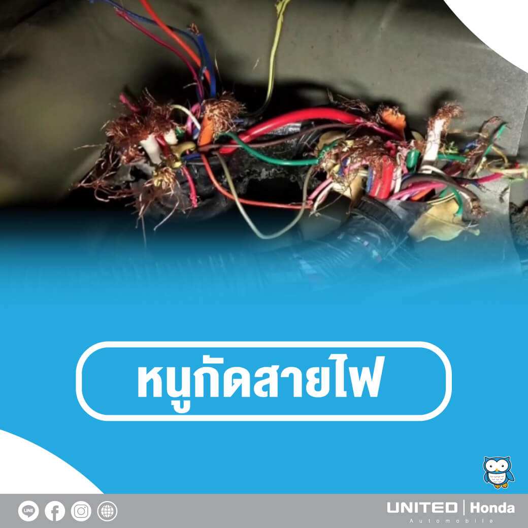 สาเหตุที่ทำให้หนูเข้าไปในห้องเครื่องได้อาจเป็นเพราะมีเศษขนมหรือกลิ่นของขนมอยู่ในรถ รวมไปถึงไออุ่นจากเครื่องยนต์ซึ่งสามารถเป็นที่พักพิงยามหนาวของพวกหนูๆ ได้ ดังนั้น ผู้ใช้รถยนต์จะต้องคอยรักษาความสะอาดสม่ำเสมอนะครับ เพื่อไม่ให้สัตว์ต่างๆ เข้าไปพักพิงที่ห้องเครื่องได้ เพราะถ้าสัตว์พวกนี้เข้าไปแล้วอาจจะไม่ได้เข้าไปอยู่เฉยๆ แน่นอน อาจจะเกิดการกัดแทะสายไฟรถพร้อมกับทิ้งรอยเท้าของสัตว์ไว้