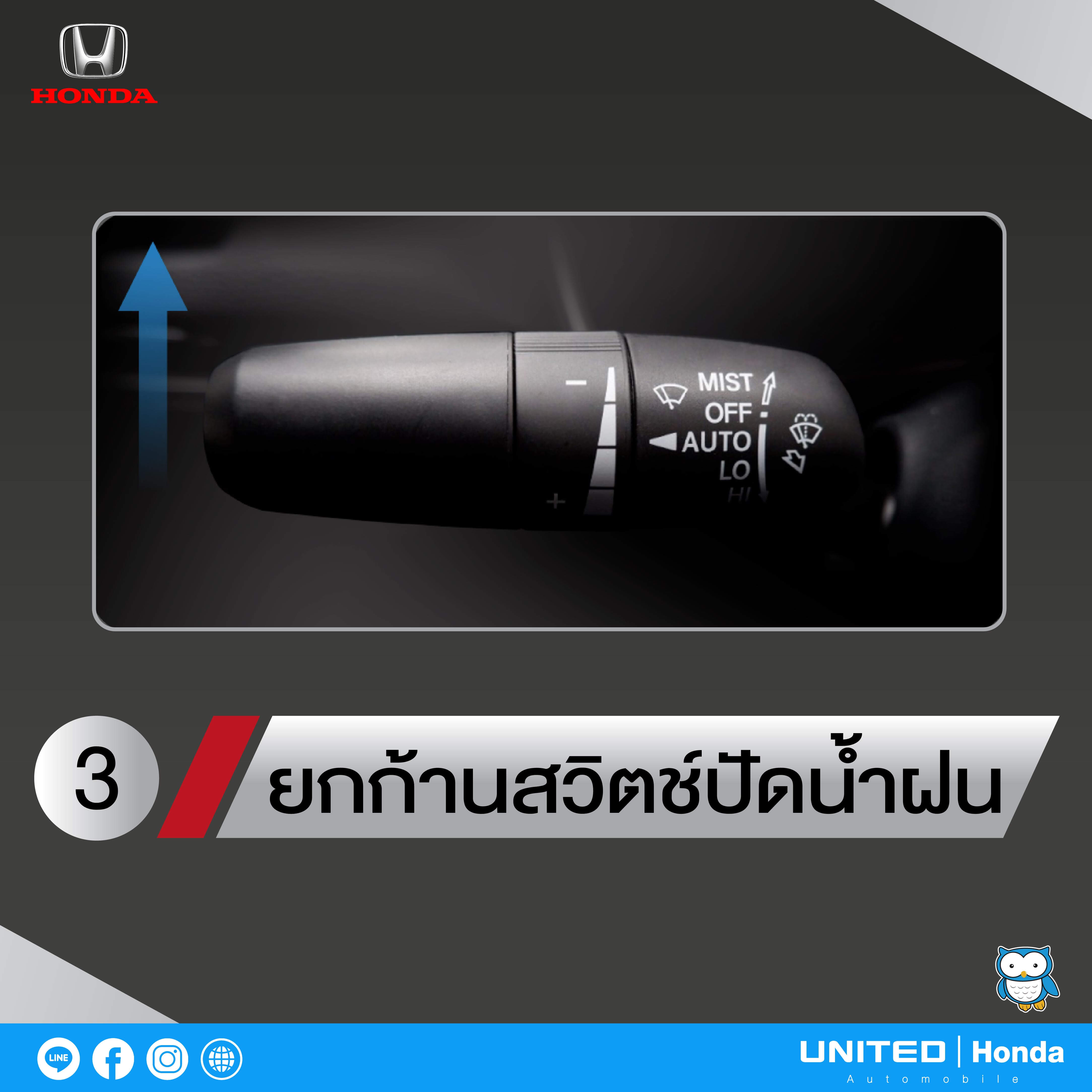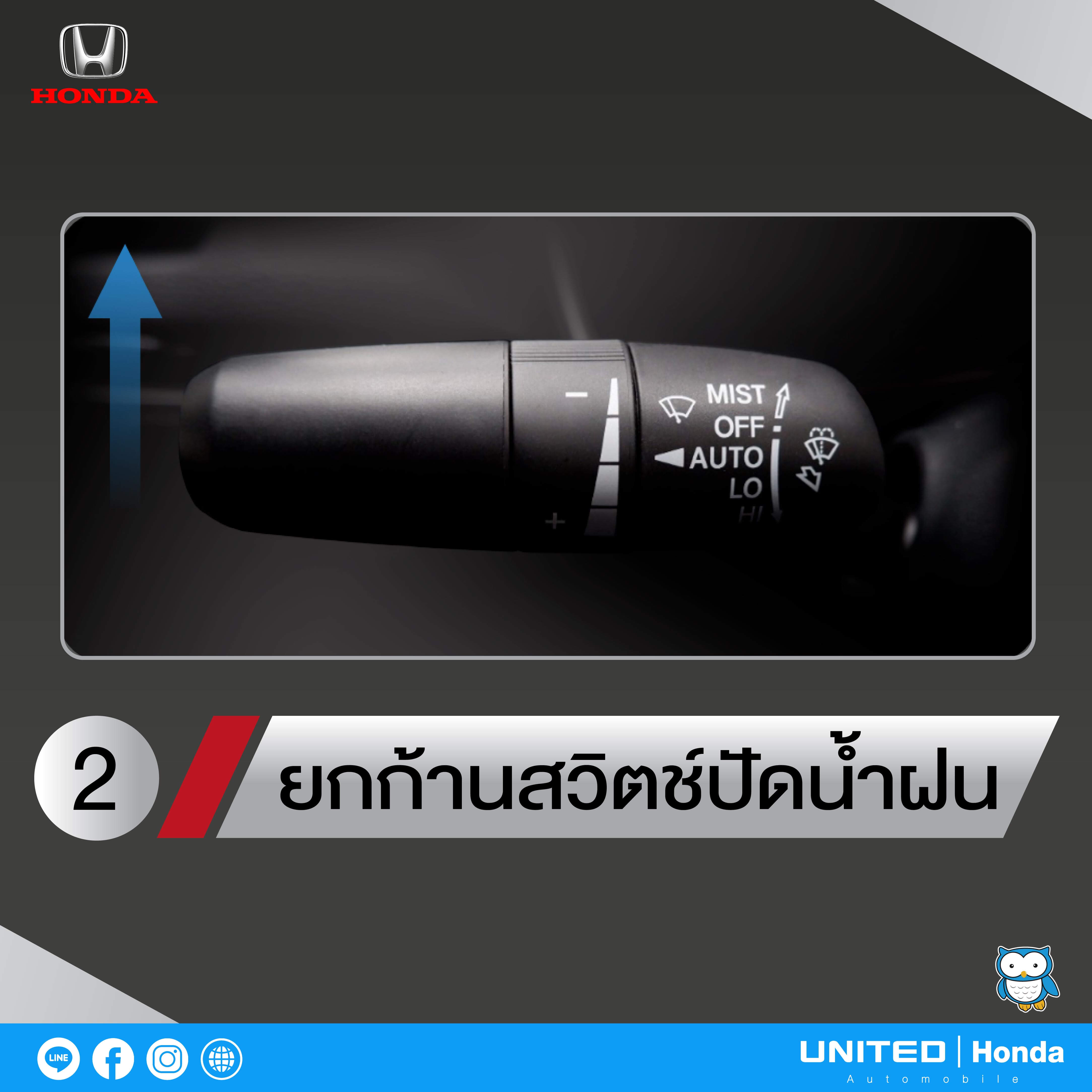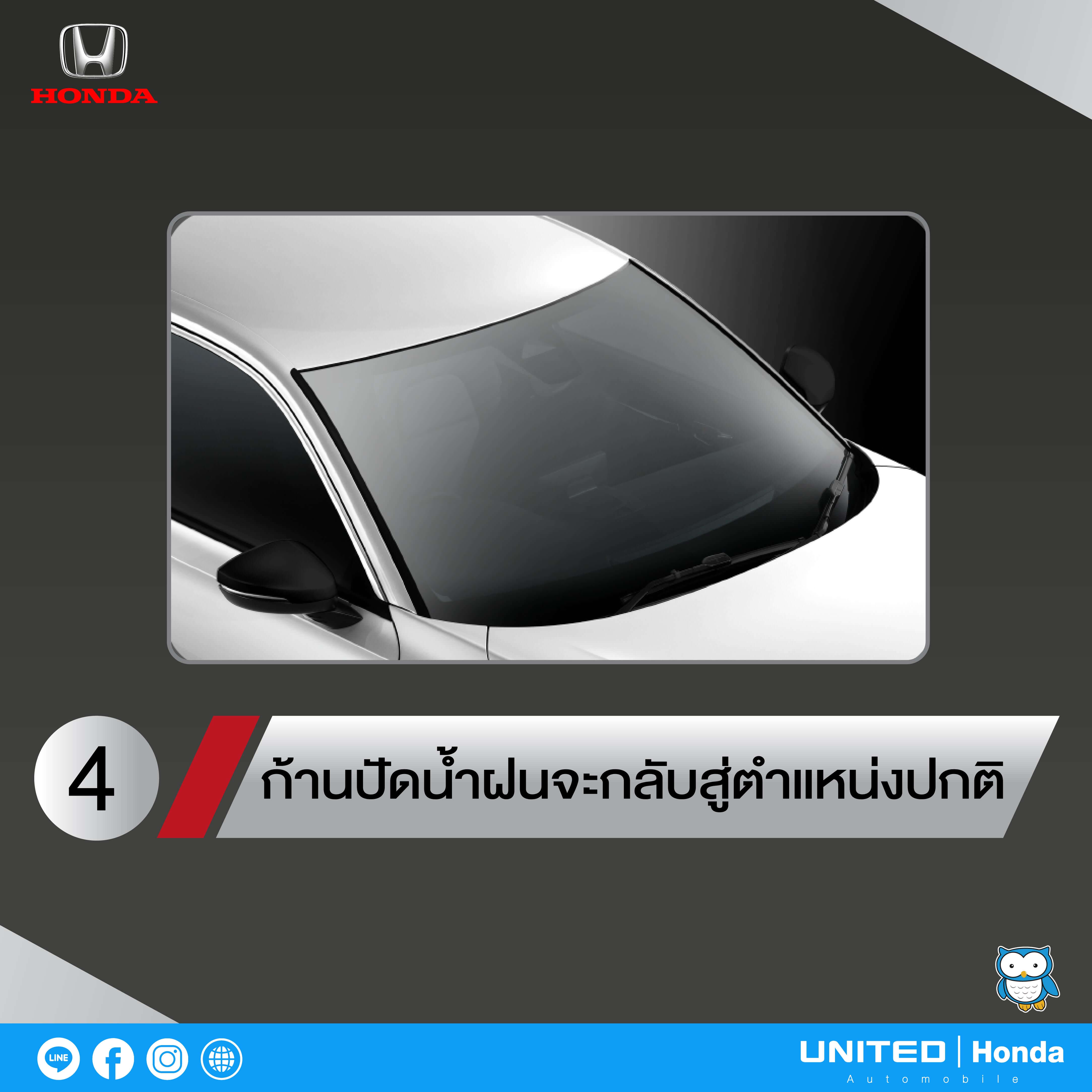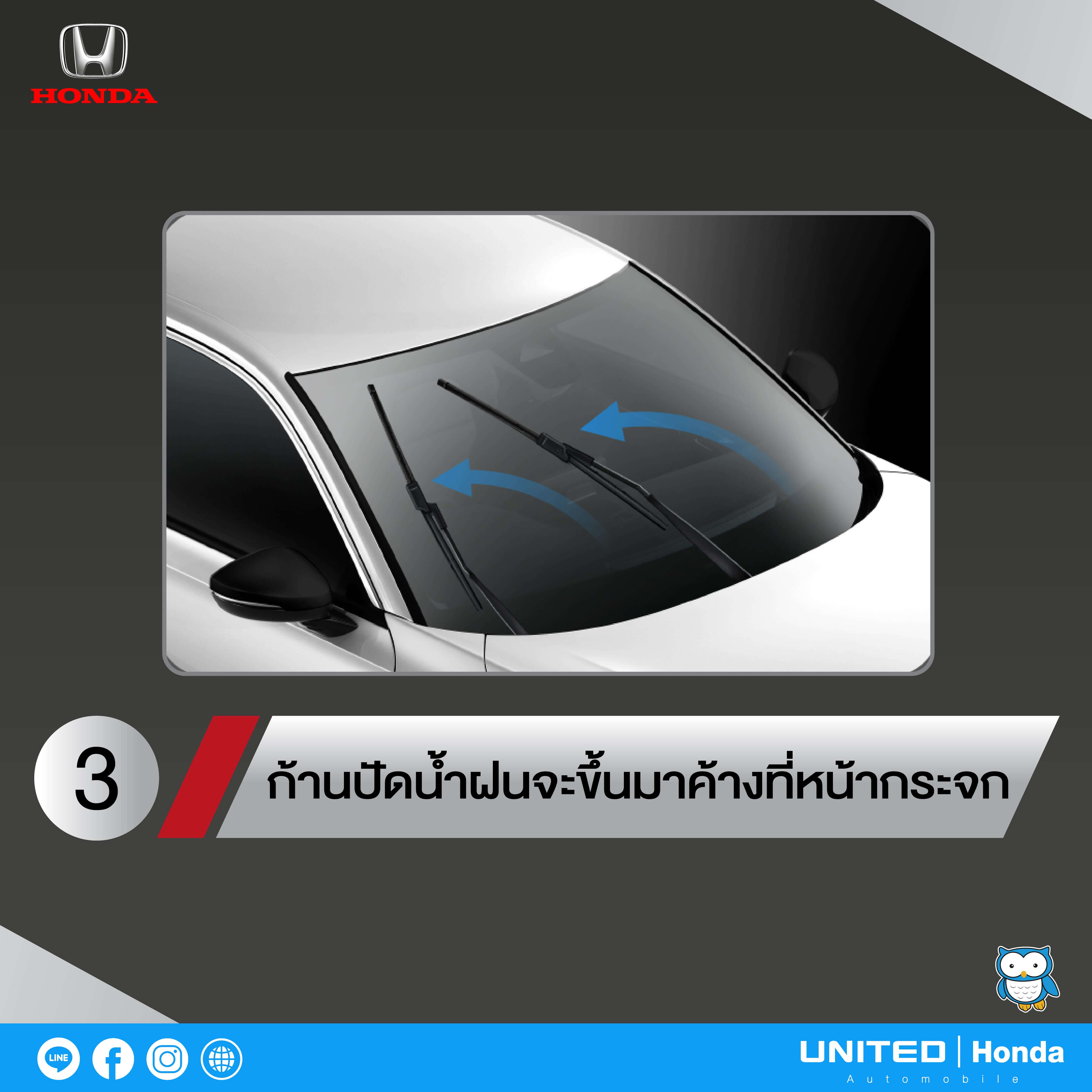 อีกหนึ่งสิ่งที่ในรถยนต์ ฮอนด้า ซีวิค เจเนอเรชันที่ 11 นี้ ได้มีการปรับย้ายตำแหน่งของก้านปัดน้ำฝน เพื่อไม่ให้รบกวนสายตาของผู้ขับขี่ในขณะที่ขับขี่ และด้วยตำแหน่งของก้านปัดน้ำฝนที่ต่ำลงจึงทำให้การยกและเก็บก้านปัดน้ำฝนมีวิธีที่ต่างไปจากเดิม สำหรับวิธีการยกและเก็บก้านปัดน้ำฝนนั้น ยูไนเต็ด ฮอนด้า ได้นำทริคมาฝากครับ