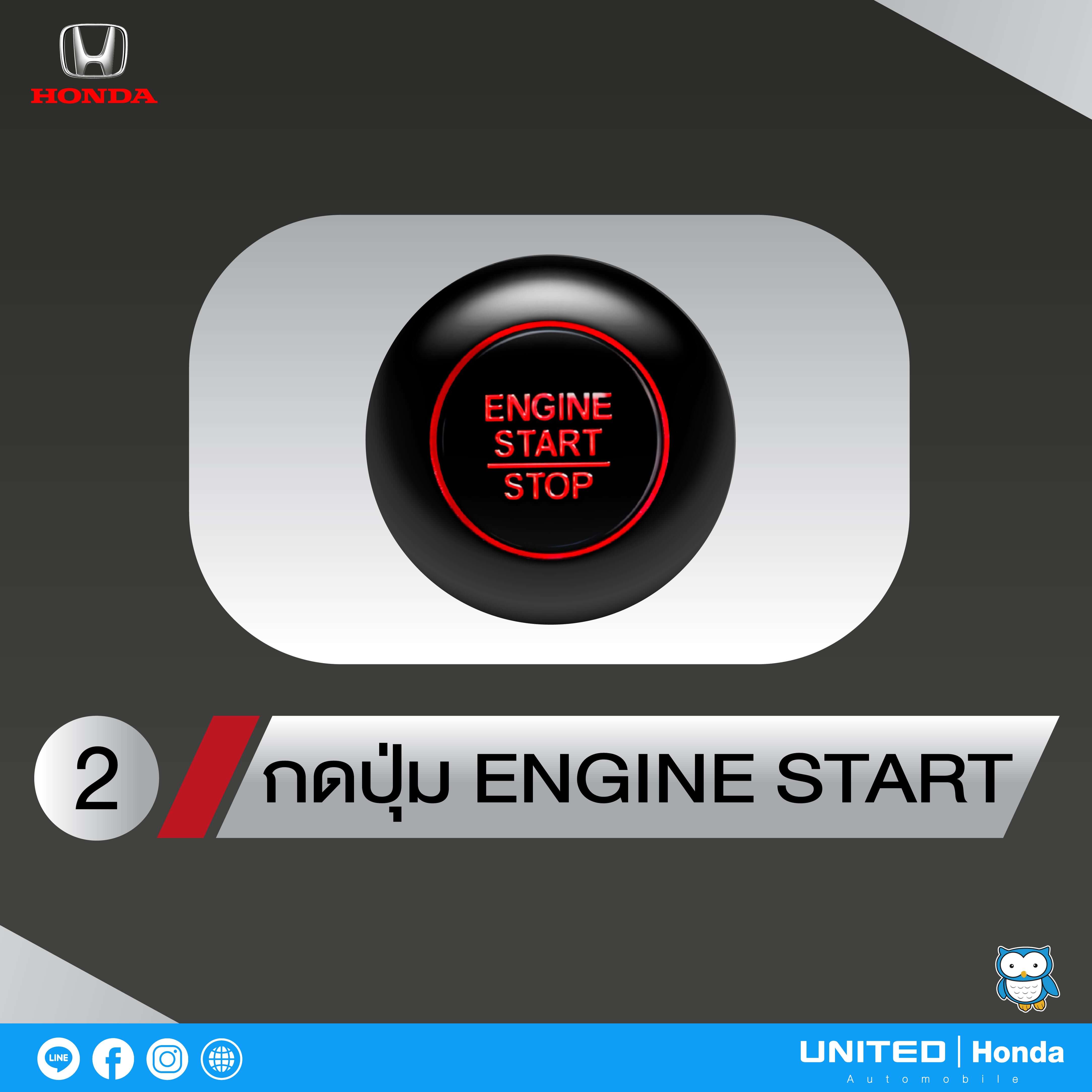 - ขั้นตอนที่ 2 จากนั้นกดปุ่ม ENGINE START โดยกด 2 ครั้ง หรือสตาร์ทเครื่องยนต์