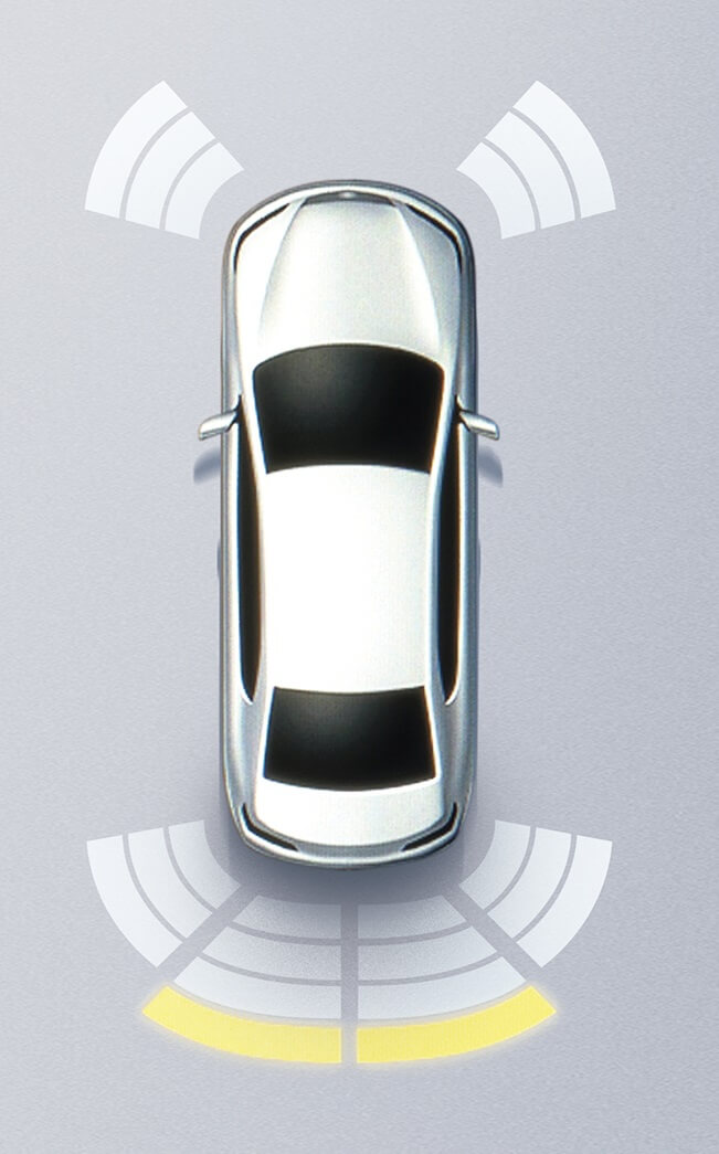 เซนเซอร์กะระยะมีทั้งหมด 4 จุดด้านหน้าและ 4 จุดด้านหลัง เพื่อช่วยในการตรวจจับระยะห่างและเพิ่มความปลอดภัยในขณะขับขี่