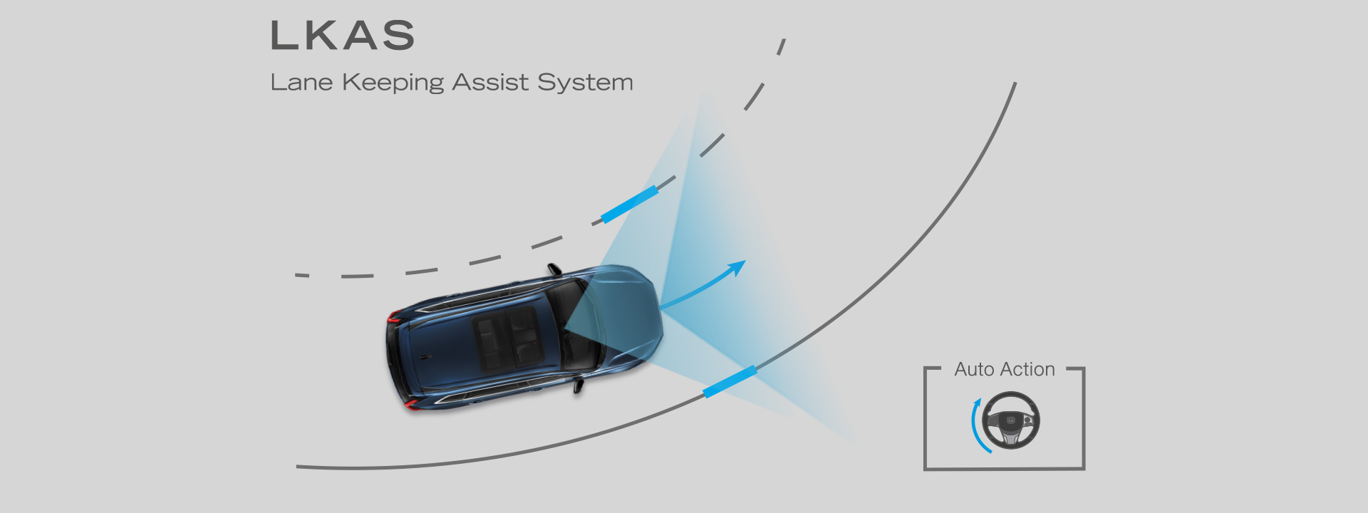 ระบบจะใช้กล้องด้านหน้าในการตรวจจับเส้นแบ่งช่องทางจราจร หากพบว่ารถอยู่ในสภาวะเบี่ยงออกนอกช่องทางโดยไม่ตั้งใจ ระบบจะส่งสัญญาณเตือนที่หน้าจอแสดงข้อมูลพร้อมการสั่นเตือนของพวงมาลัย และในกรณีที่รถเริ่มเบี่ยงออกนอกช่องทางมากยิ่งขึ้น ระบบจะช่วยหน่วงพวงมาลัย เพื่อให้รถกลับเข้าสู่ช่องทางปกติ ช่วยลดความเสี่ยงที่รถจะออกนอกช่องทางจราจร