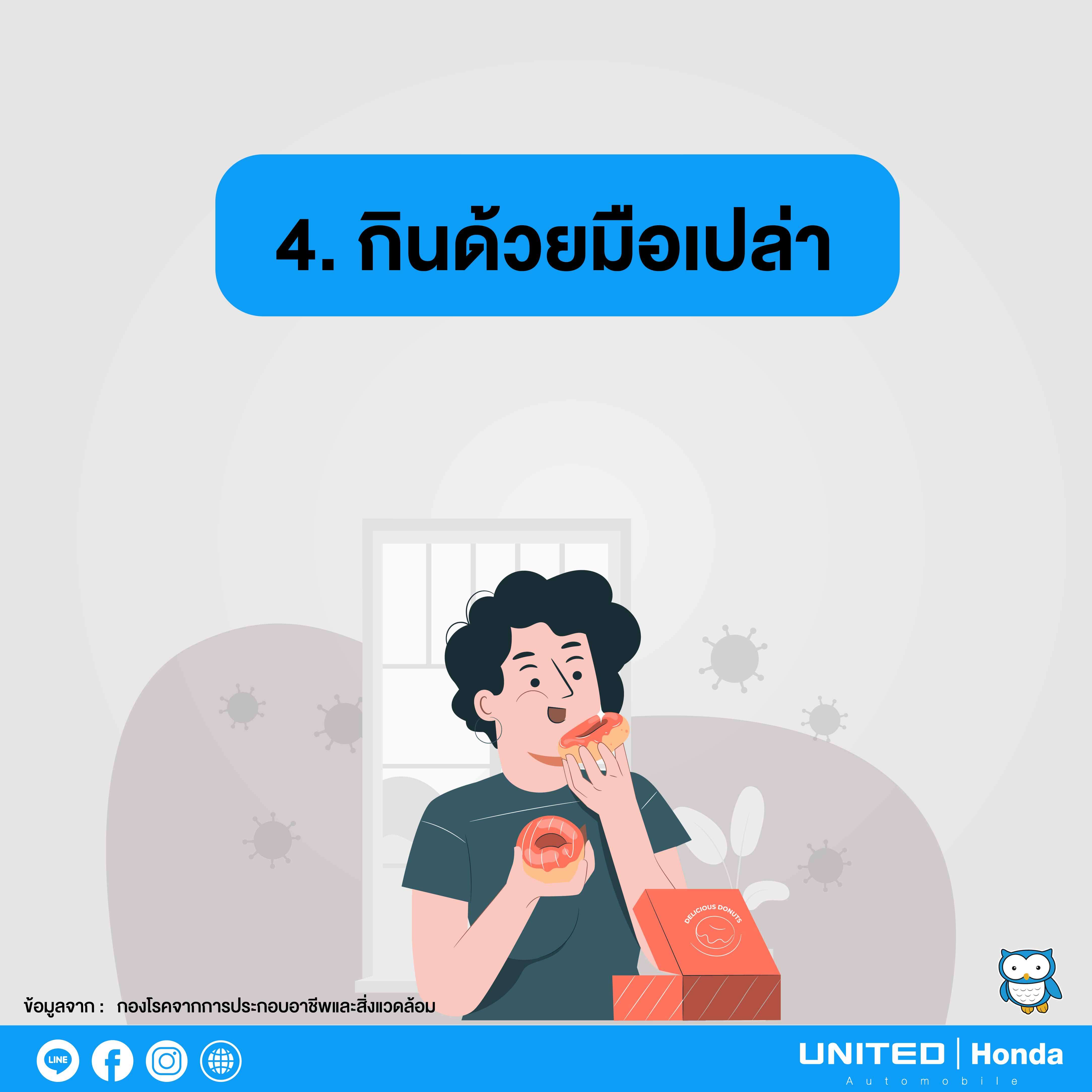 มือเป็นจุดที่สะสมเชื้อโรค ฉะนั้นไม่ควรหยิบอาหารด้วยมือเปล่าเด็ดขาด