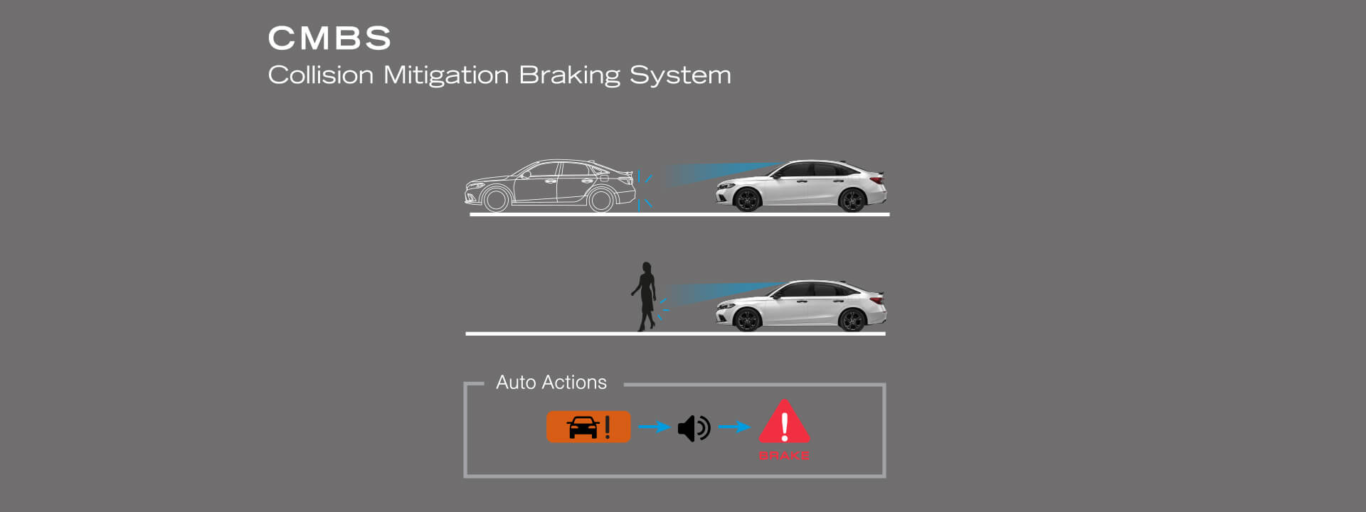 - ระบบเตือนการชนพร้อมระบบช่วยเบรก (Collision Mitigation Braking System: CMBS)