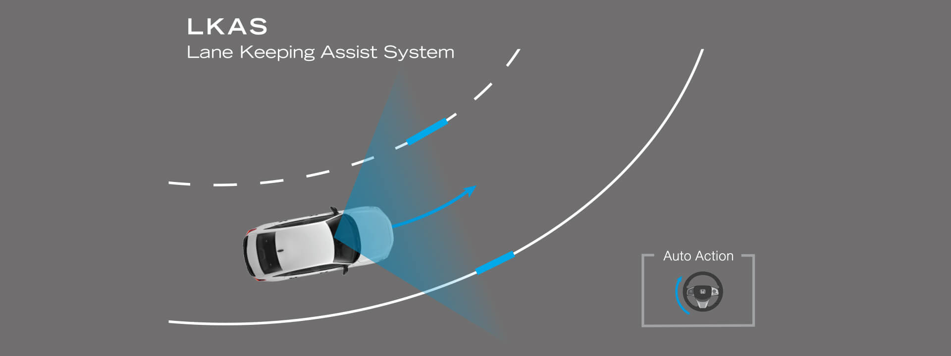เป็นระบบจะใช้กล้องด้านหน้าในการตรวจจับเส้นแบ่งช่องทางจราจร หากพบว่ารถอยู่ในสภาวะเบี่ยงออกนอกช่องทางโดยไม่ตั้งใจ ระบบจะส่งสัญญาณเตือนที่หน้าจอแสดงข้อมูลพร้อมการสั่นเตือนของพวงมาลัย และในกรณีที่รถเริ่มเบี่ยงออกนอกช่องทางมากยิ่งขึ้น ระบบจะช่วยหน่วงพวงมาลัย เพื่อให้รถกลับเข้าสู่ช่องทางปกติ ช่วยลดความเสี่ยงที่รถจะออกนอกช่องทางจราจร