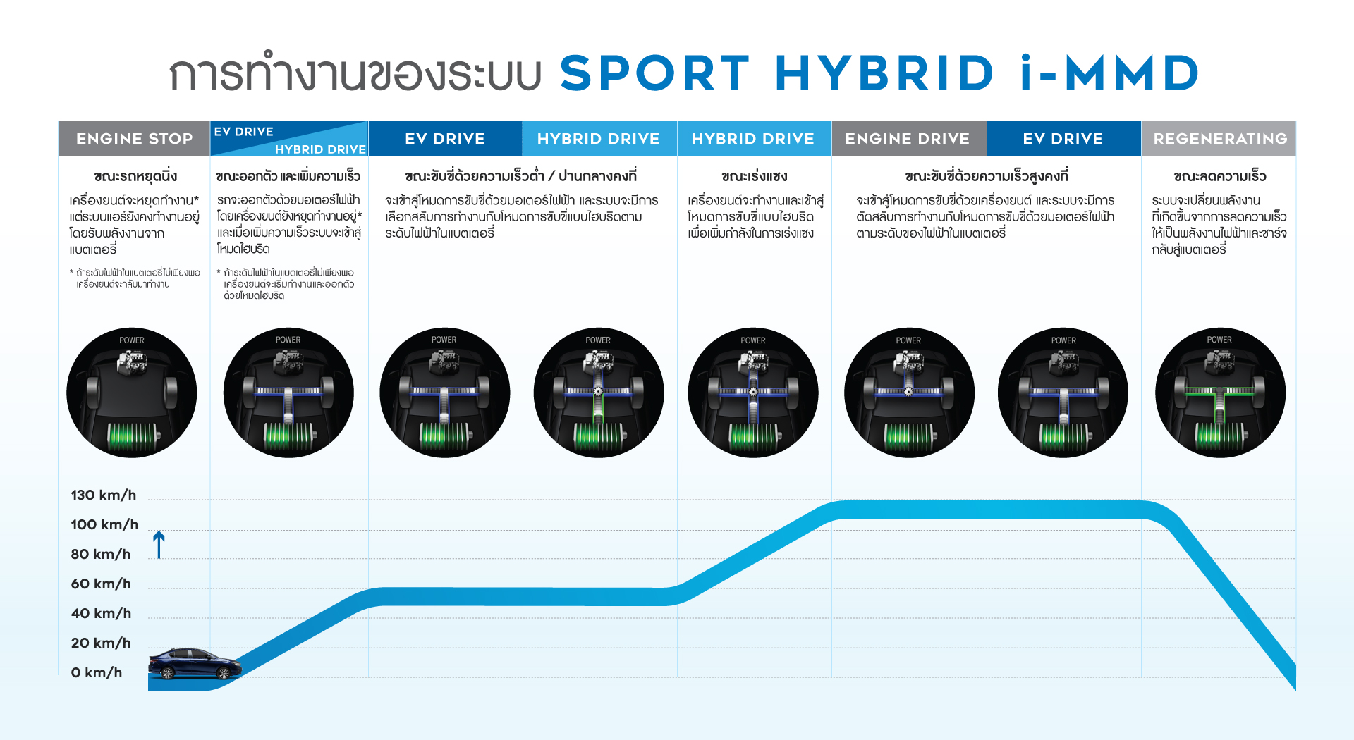 มาพร้อมจุดเด่นเทคโนโลยีฟลูไฮบริดไปกับพลังเทคโนโลยีการขับเคลื่อนอันล้ำสมัยด้วยระบบขับเคลื่อน Sport Hybrid Intelligent Multi-Mode Drive (i-MMD) ผสานการทำงานพลังของมอเตอร์ไฟฟ้า 2 ตัวด้วยกัน