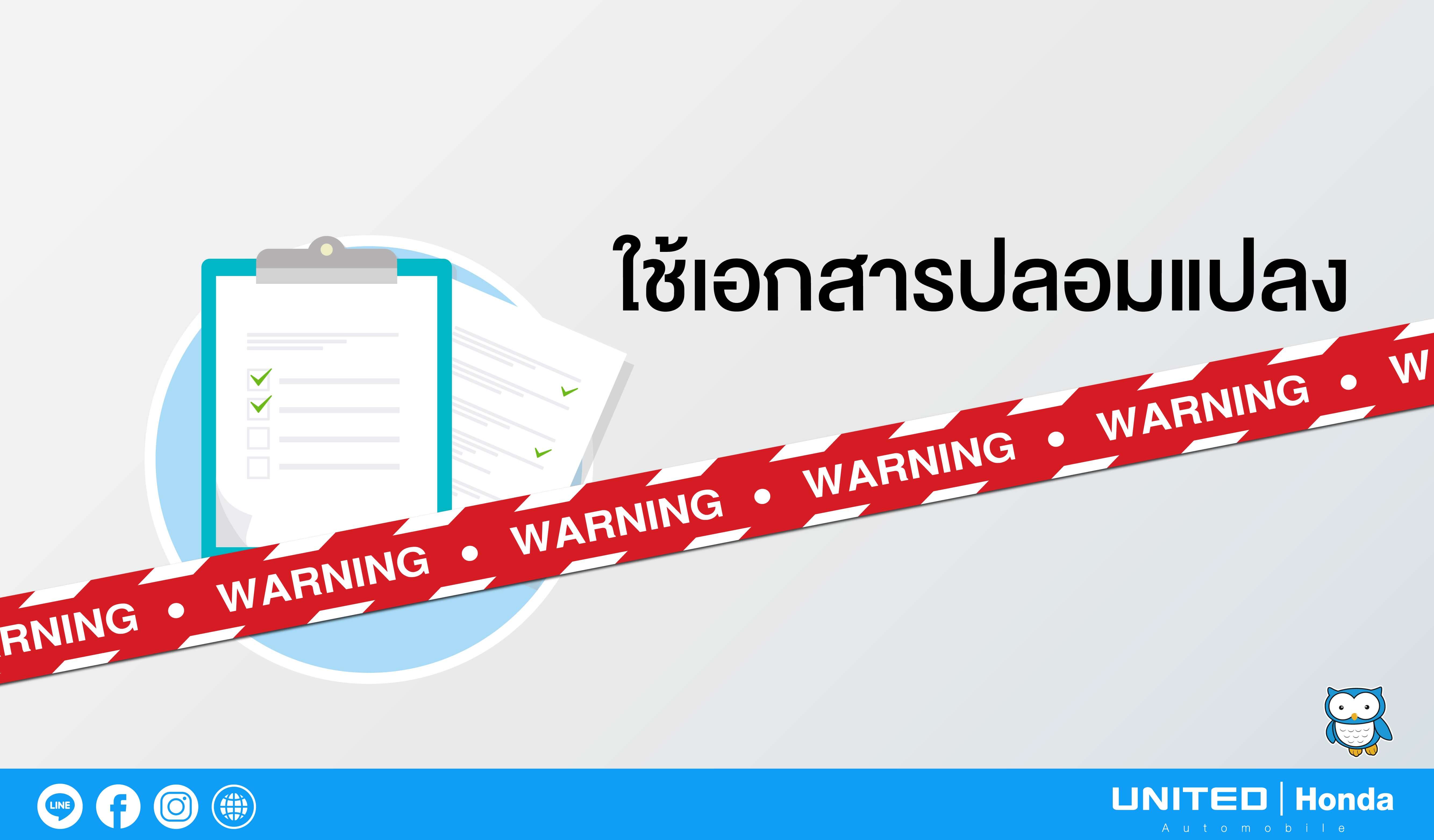 ใช้เอกสารปลอมแปลงในรูปแบบที่มีความใกล้เคียงกับฮอนด้า นอกจากการฟังในสิ่งที่แอบอ้างแล้วจะต้องตรวจสอบเอกสารให้ดีด้วยนะครับว่าเป็นเอกสารปลอมแปลงหรือไม่