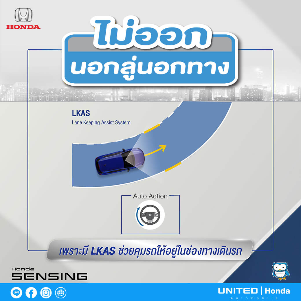 การควบคุมรถให้อยู่ในช่องทางการเดินรถนั้น ในบางครั้งก็เป็นสิ่งที่ยากสำหรับมือใหม่นะครับ ไม่ว่าจะขับทางตรง ทางเลี้ยวหรือการเข้าโค้ง แต่ถ้ามีเทคโนโลยีที่ช่วยควบคุมให้อยู่ในช่องทางการเดินรถก็จะดีใช่ไหมครับ สำหรับตัวช่วยในการควบคุมรถนั้นก็จะมีระบบ LKAS : Lane Keeping Assist System โดยกล้องด้านหน้าจะทำการตรวจจับเส้นแบ่งช่องทางเดินรถ ซึ่งระบบจะช่วยเพิ่มแรงหน่วงของพวงมาลัยเพื่อช่วยผู้ขับขี่ควบคุมรถให้อยู่ในช่องทางปกติ และยังช่วยลดอาการเหนื่อยล้าของผู้ขับขี่อีกด้วยนะครับ