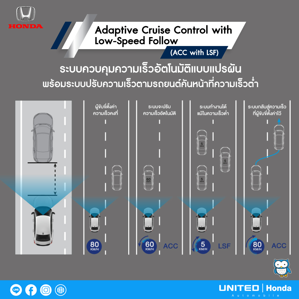 ระบบควบคุมความเร็วอัตโนมัติแบบแปรผัน พร้อมระบบปรับความเร็วตามรถยนต์คันหน้าที่ความเร็วต่ำ (Adaptive Cruise Control with Low-Speed Follow: ACC with LSF)