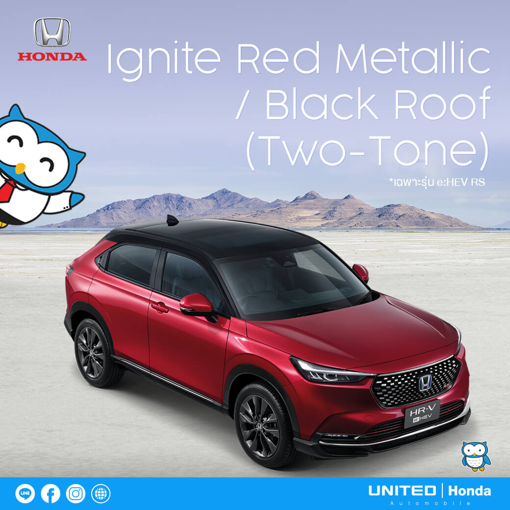 - สีแดงอิกไนต์ (เมทัลลิก) ที่มาพร้อมหลังคาสีดำสไตล์ทูโทน *เฉพาะรุ่น e:HEV RS