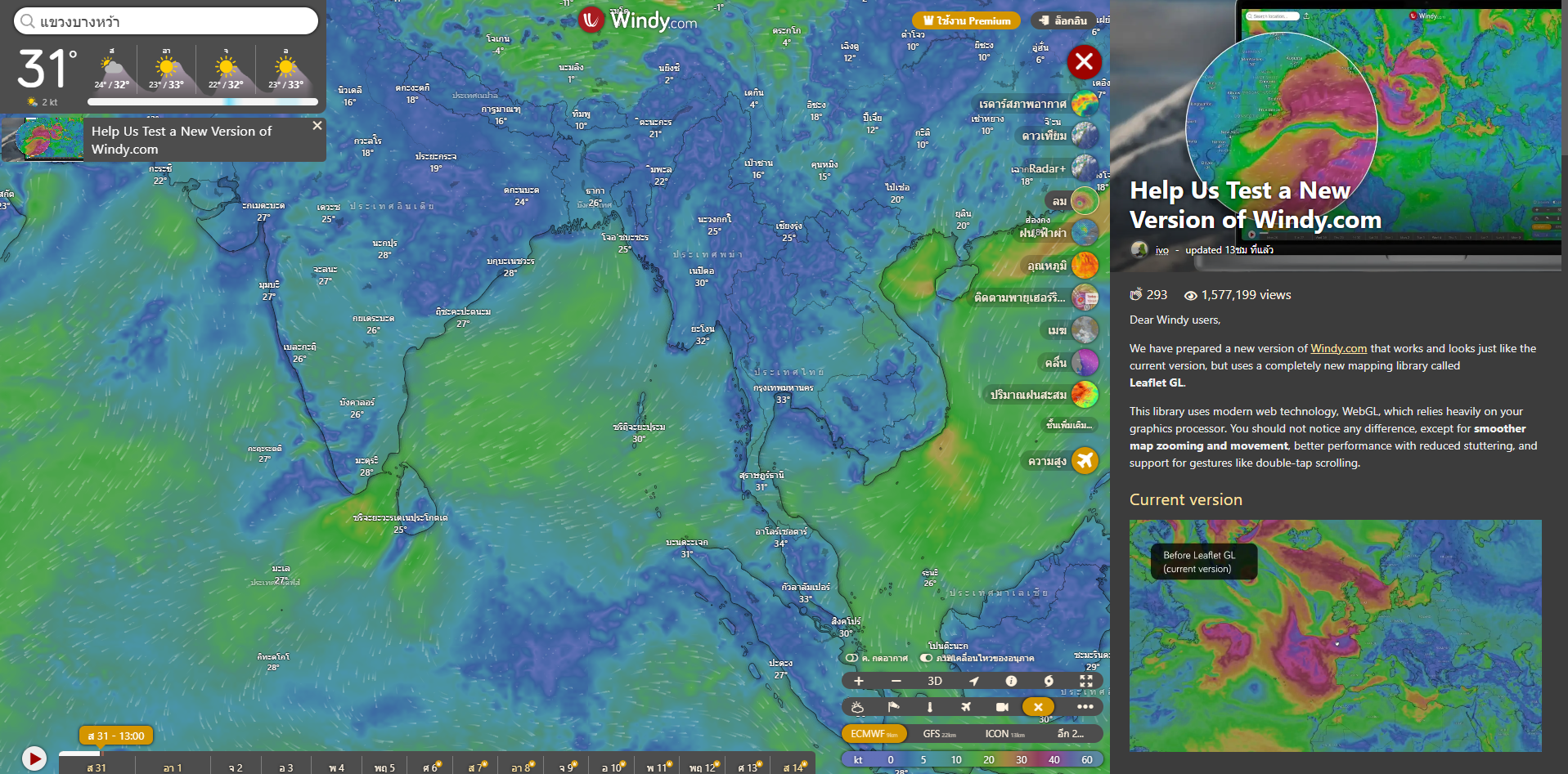 Windy.com (สายลึก ข้อมูลแน่น) คลิกเลย!
