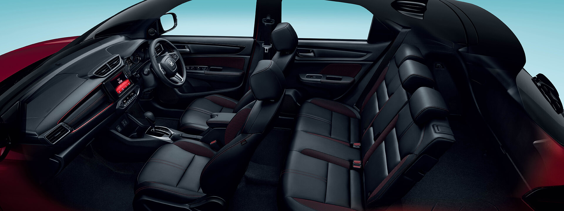 - วัสดุตกแต่งภายในสีดำ Piano black และตกแต่ง Piano black แถบสีแดง