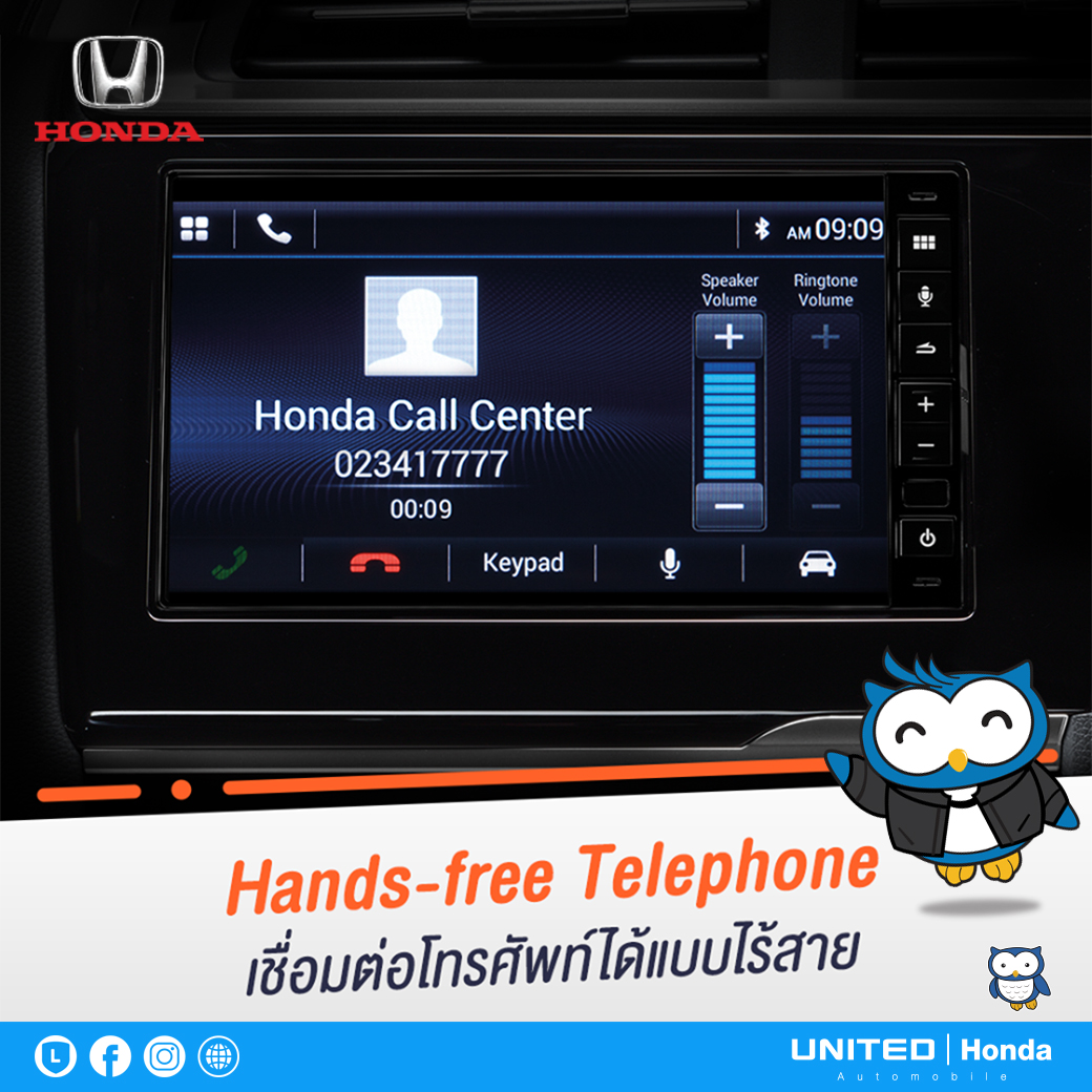 ถ้ามีสายโทรเข้า-ออกก็สบาย เพราะมี Hands-free Telephone เชื่อมต่อโทรศัพท์ได้แบบไร้สาย
