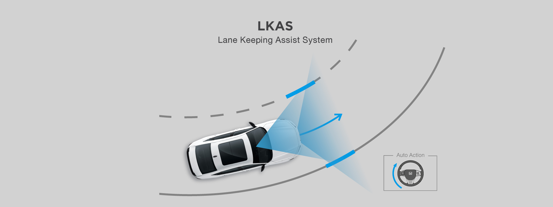 - ระบบช่วยควบคุมรถให้อยู่ในช่องทางเดินรถ (Lane Keeping Assist System: LKAS) ซึ่งกล้องด้านหน้าจะทำการตรวจจับเส้นแบ่งช่องทางการเดินรถ ระบบนี้จะช่วยเพิ่มแรงหน่วงของพวงมาลัย เพื่อช่วยให้ผู้ขับขี่ควบคุมให้อยู่ในช่องทางปกติ และลดอาการเหนื่อยล้าของผู้ขับขี่