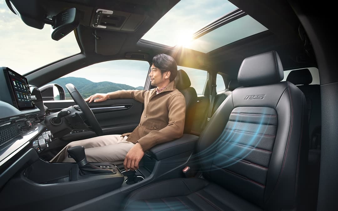 แต่ใน Honda CR-V e:HEV ปัญหานี้จะหมดไปครับ เพราะเขามีระบบ Ventilated Seats หรือเบาะนั่งคู่หน้าพร้อมระบบระบายอากาศ ที่จะช่วยส่งผ่านลมเย็นผ่านรูระบายอากาศเล็กๆ บนตัวเบาะ