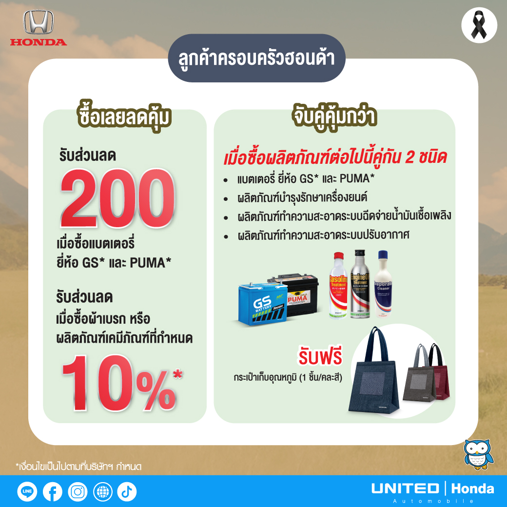 สำหรับลูกค้าครอบครัวฮอนด้าทุกคน