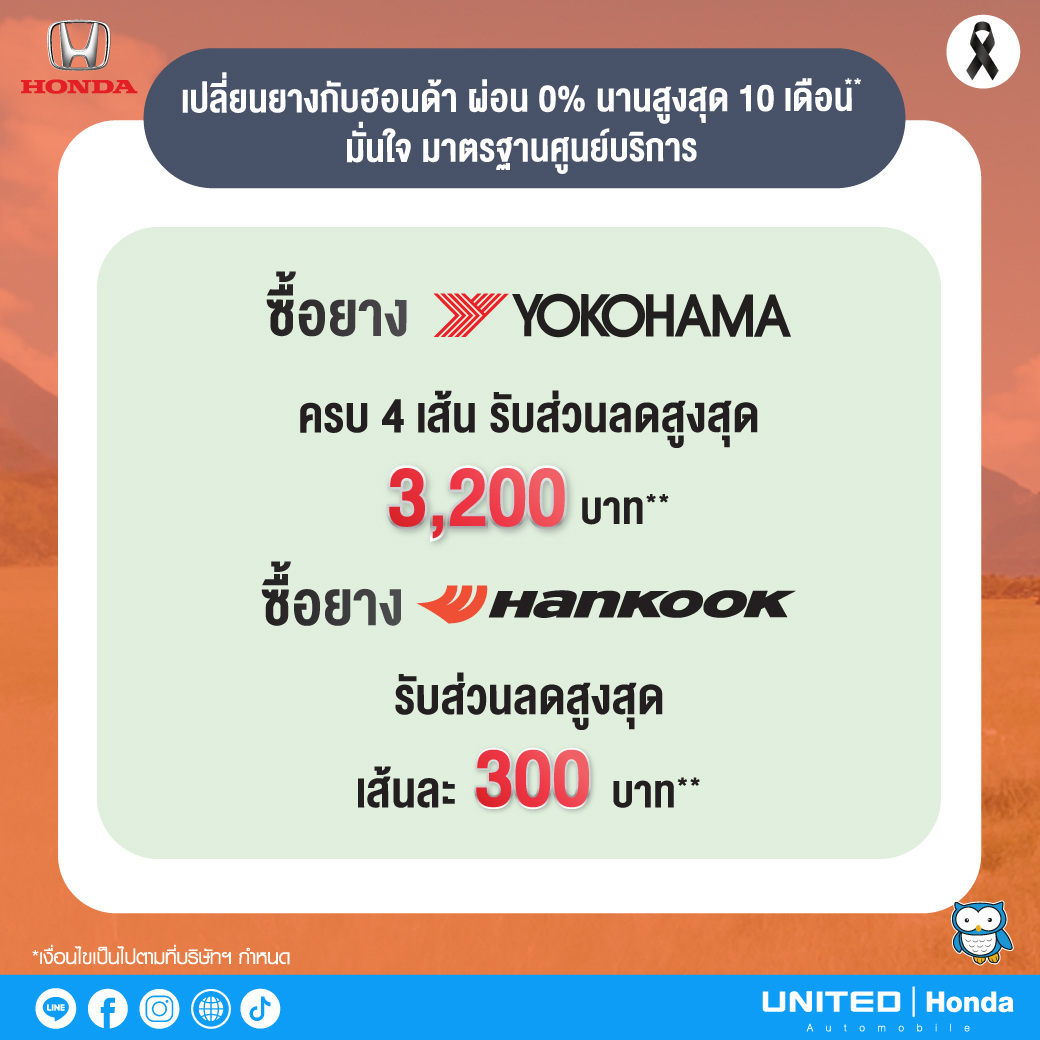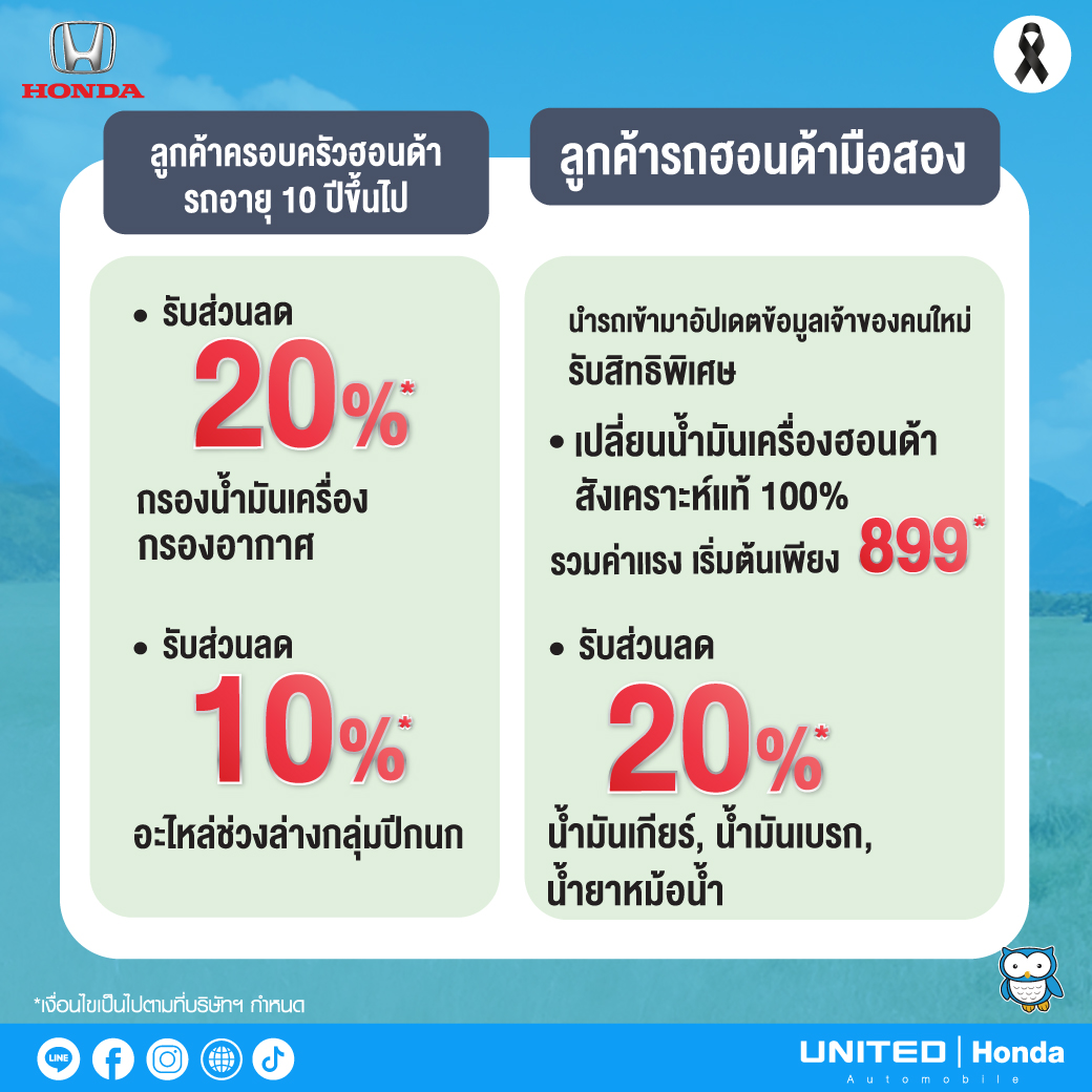 พิเศษสำหรับลูกค้าฮอนด้ารถใหม่ อายุไม่เกิน 1 ปี* *นับจากวันส่งมอบรถใหม่