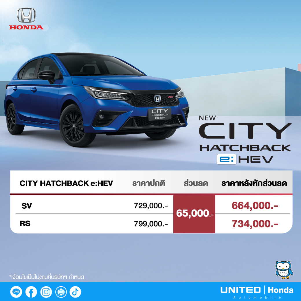 - Honda City Hatchback e:HEV: ราคาหลังหักส่วนลดเริ่มที่ 664,000 บาท
