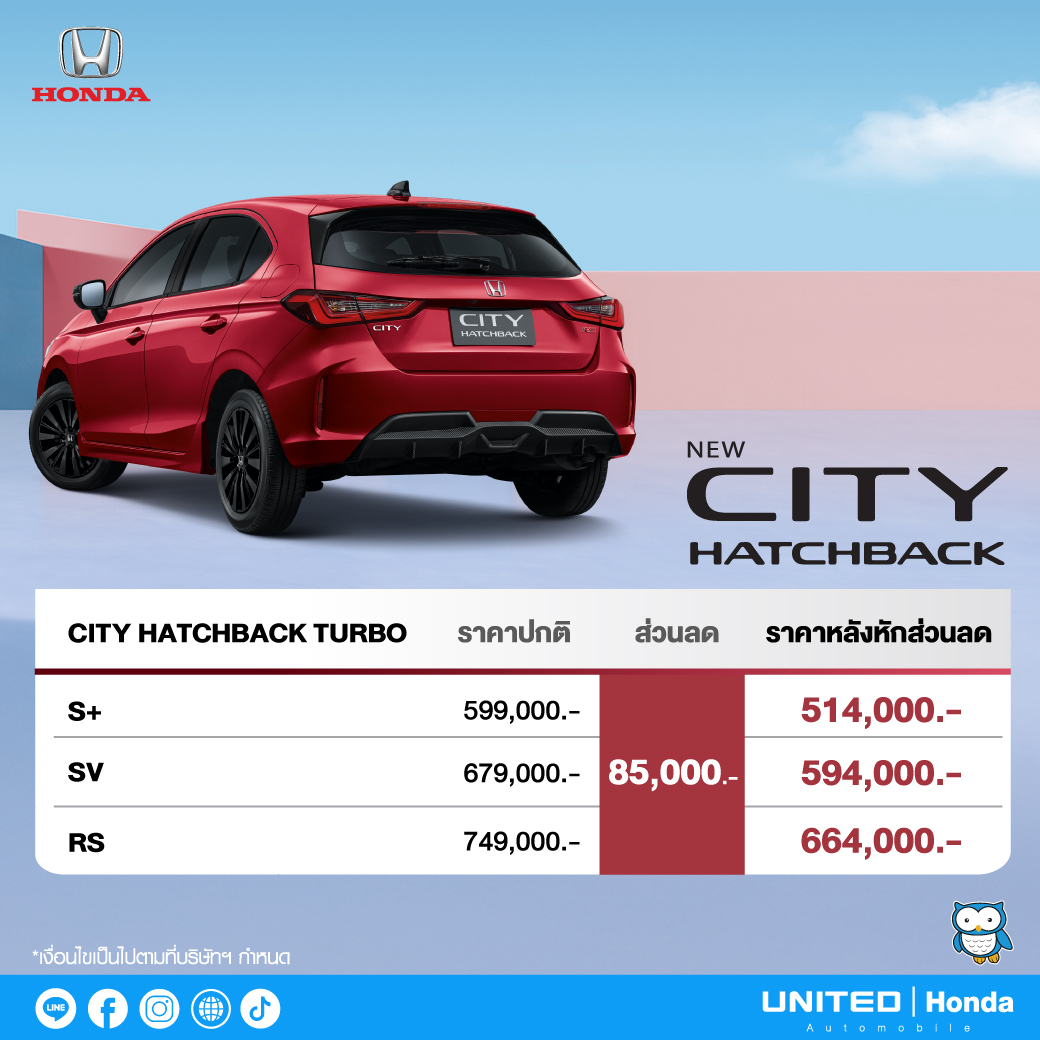 - Honda City Hatchback Turbo: ราคาเริ่มต้นเพียง 514,000 บาท