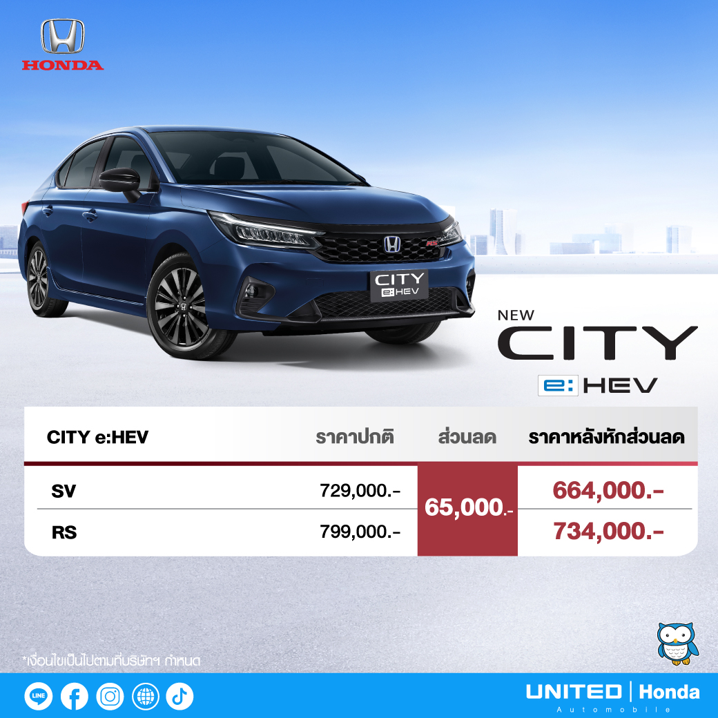 - Honda City e:HEV: ราคาหลังหักส่วนลดเริ่มที่ 664,000 บาท