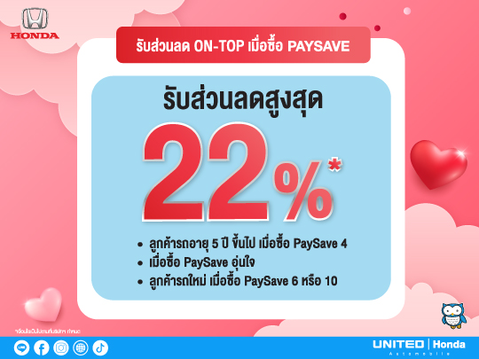 - PaySave: ซื้อแพ็กเกจเช็กระยะล่วงหน้า รับส่วนลดสูงสุดถึง 22%*